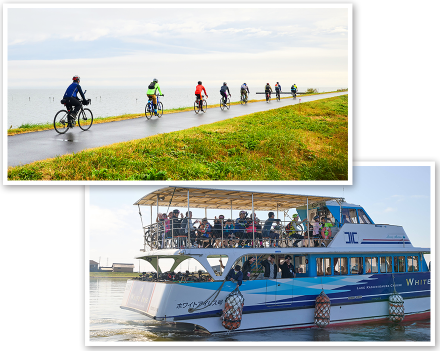 霞ヶ浦のサイクリングとクルージングが一度に両方楽しめる比較的ライトなコースや霞ヶ浦一周の達成感を味わうことのできる霞ヶ浦1周のロングコースまであらゆるサイクリストにお楽しみいただけるコースを用意しました。